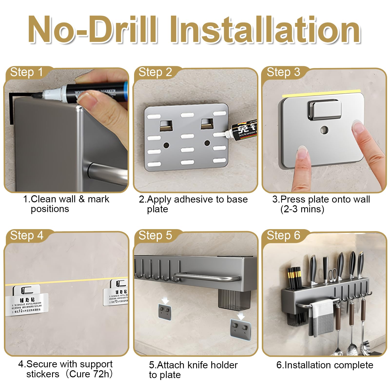 - Wall Mount Utensil Rack:Effortlessly organize knives, spices, utensils, and cookware with this hanging storage rack,easily free up more space for you, with no more clutter in your house and kitchen,perfect for small kitchens, RVs, or apartments